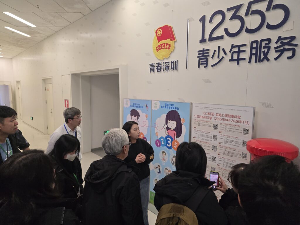 由深圳市康寧醫院黨委書記王建紅帶領的團隊,與我們分享醫院有關青少年精神健康服務。例如於各區黨群服務中心設立的「安心驛站」,利用黨群服務中心地利優勢,為小區基層居民提供適切心理諮詢服務、有關精神健康展覽及講座等;為支援停學青少年的「安心助學」計劃。王建紅書記更與我們分享「安心助學」計劃受助青少年復學率能夠達72%,最核心的介入部份為家長工作,認為讓青少年與家長復建良好溝通及親子關係,是計劃成功的主要因素。從分享中,我們深深感受到王建紅書記和她所帶領團隊的熱誠,她們的分享,讓我們獲益良多。
