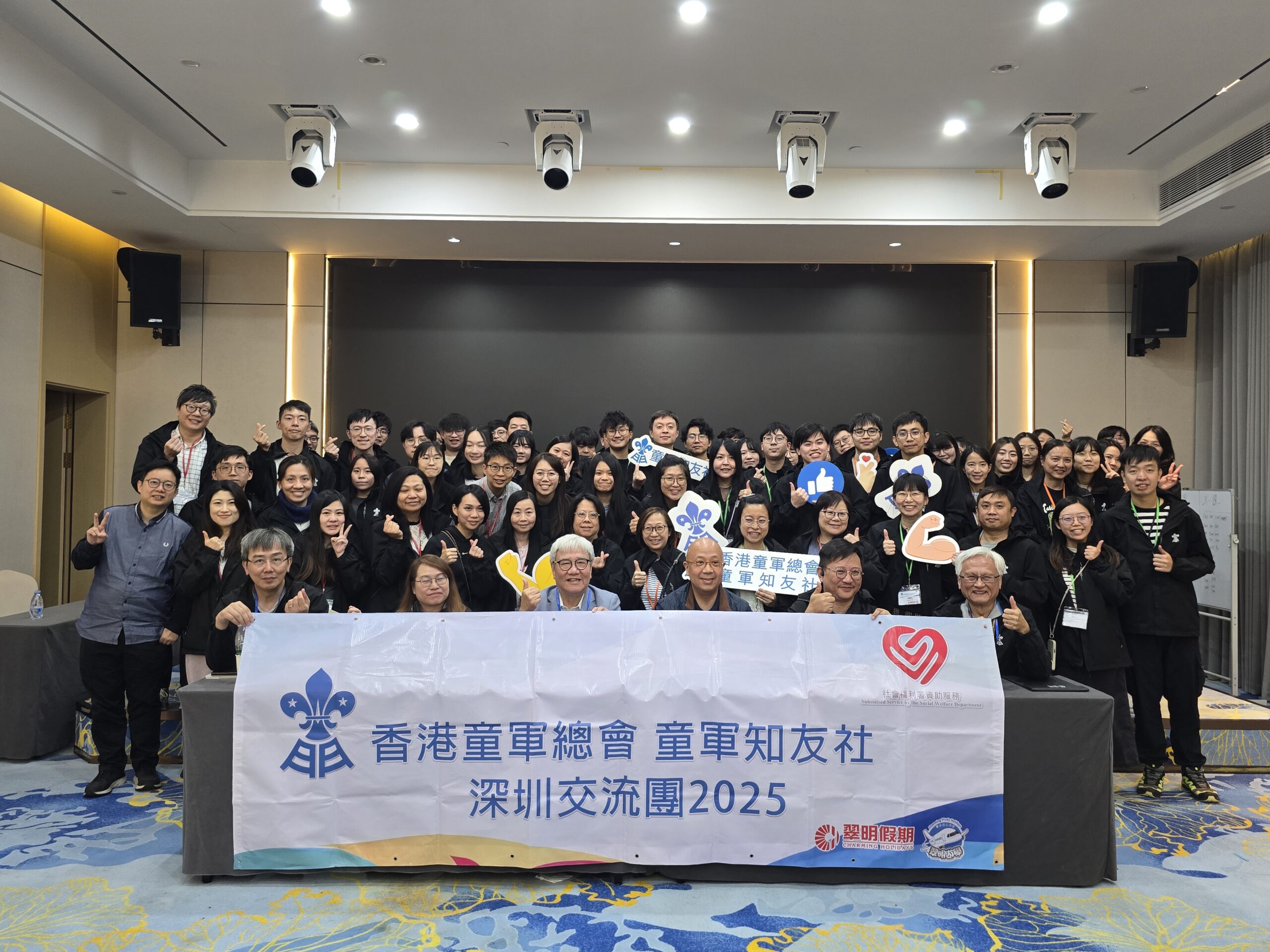 童軍知友社70名職員,於2025年12月19日至21日赴深圳進行交流活動,透過三日兩夜行程,加深了對內地青年政策及社會服務狀況的認識,與我們同行還有童軍知友社總監羅保林先生、副童軍知友社總監馮志豪教授、青少年服務發展委員會副主席陳偉道先生,MH、委員林旭傑博士及陳玉嬋博士。執行委員會主席余錦榮先生,亦專程抽空出席第二日於酒店內舉行的職員退修會議,與總監及委員們,一同聽取同事們對於機構服務發展的意見。