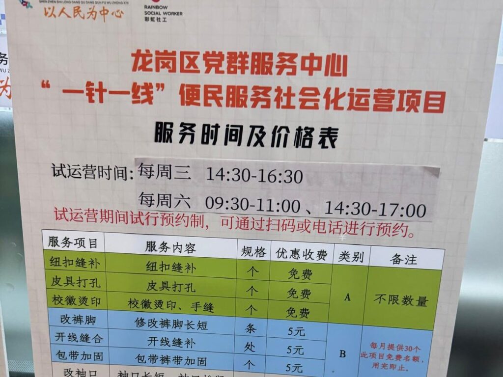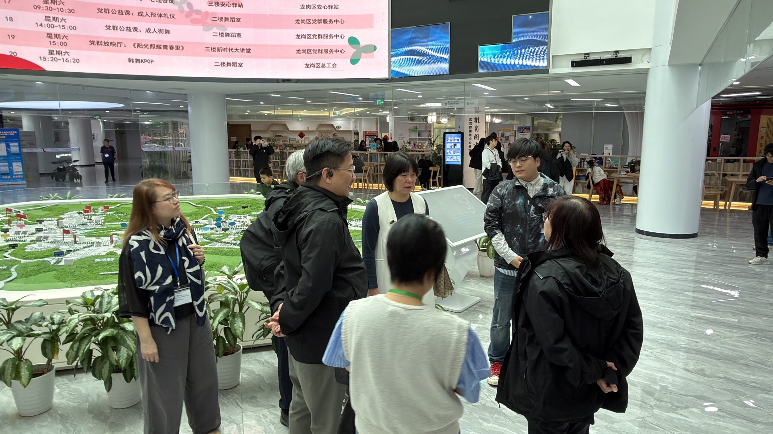 在深圳市龍崗區僑聯主席凌海英女士陪同下,我們參觀龍崗區黨群服務中心,中心為區內居民提供公共空間、便利居民的貼心服務(影印、「小修小補」便民補衫服務)、電影放映、舉辦不同興趣學習班等,同時,亦設有由深圳市康寧醫院專業指導的「安心驛站」,為基層居民提供心理諮詢服務。我們非常感謝凌主席百忙抽空,陪伴我們認識服務中心內各項便民服務。